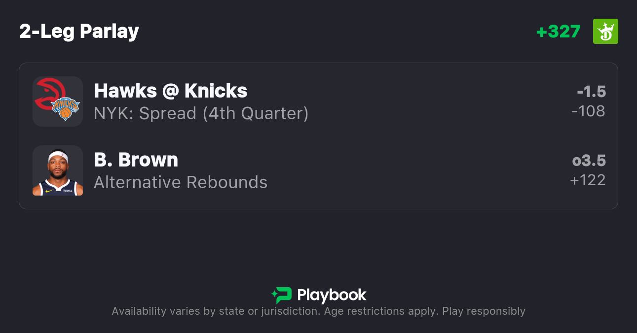 You can play this pre-game like I am, or even look to add more live if the script allows. If you’re feeling spicy, you could even build a reverse-correlated SGP with the Hawks on the full-game spread.
