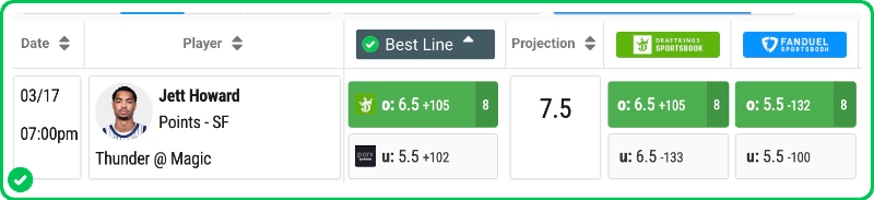 Tonight, the Magic draw a brutal matchup against a Thunder team that ranks 1st in defensive rating and 2nd in points allowed per game. However, given the amount of playing time Jett has received lately, he should still be able to clear this line.