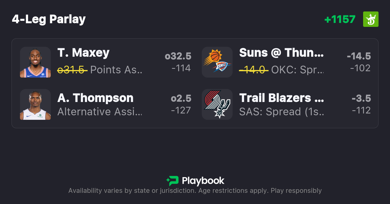 Specific betting recommendations come from the sportsbook offering preferred odds as of writing. Always shop for the best price using our NBA Odds page, which automatically surfaces the best lines for every game. | ||