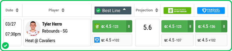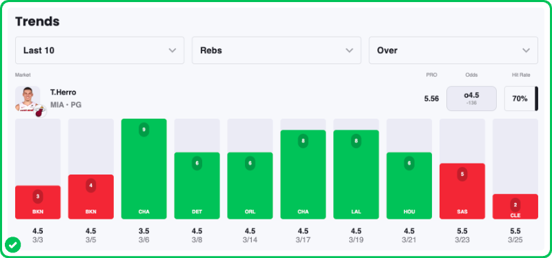 Action PRO is projecting 5.6 rebounds for Tyler Herro in the Heat's matchup against the Cavaliers tonight, presenting a solid 10% edge against his current prop line of over/under 4.5, which is is strong enough to mark the Over with a B grade in our database.