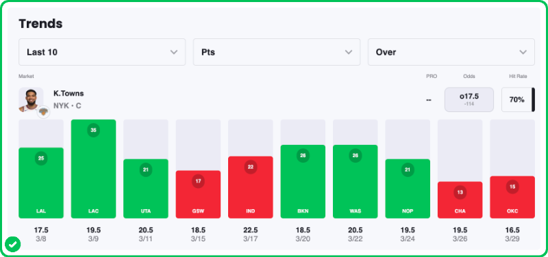 Pick: Karl-Anthony Towns Over 17.5 Points (-105)