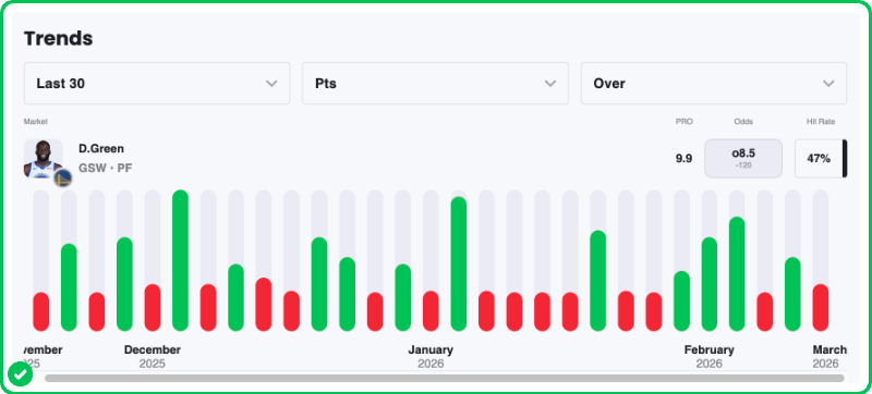 Pick: Draymond Green Under 8.5 Points (-105)