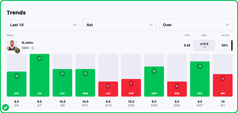 Pick: Nikola Jokic Over 9.5 Assists (-125)