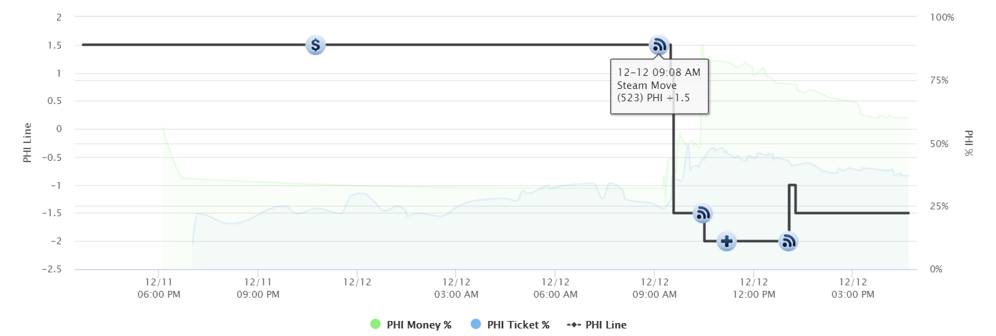 The 76ers actually opened as underdogs on the road in this spot at +1.5 but have since been pounded by sharp bettors. We initially tracked a steam move on the 76ers at +1.5 when it opened, but bettors even found value on Philly as a small favorite, hitting again at -1.