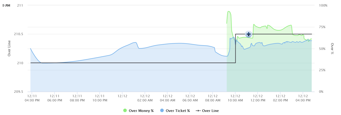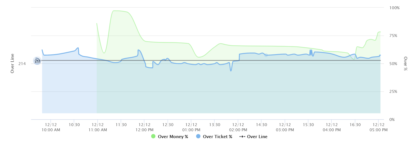 The over/under is a little boring, too. There was a steam move on over 213, which pushed things back up to the opening number of 214, but since then we've seen zero action.