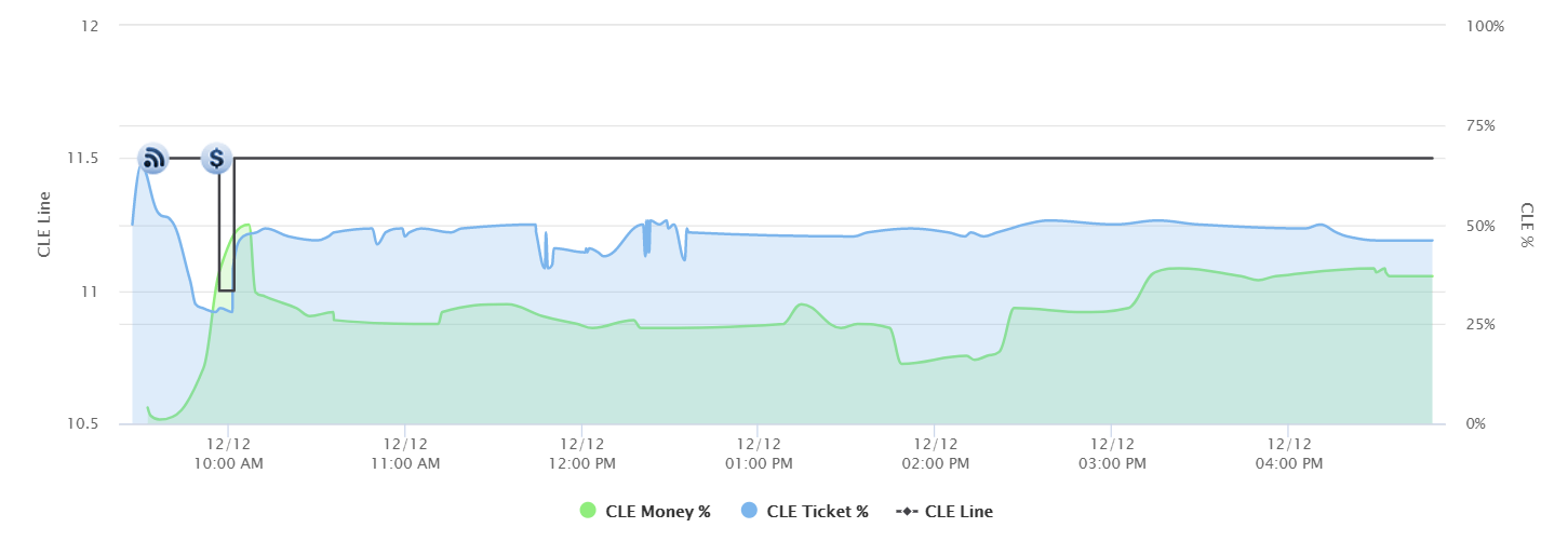 There's been little action on the spread in this one. Right after odds were posted, sharp bettors hit the Spurs at -10, pushing it to -11.5. It dipped to -11 for a very short period of time but has settled back at -11.5 for most of the day.