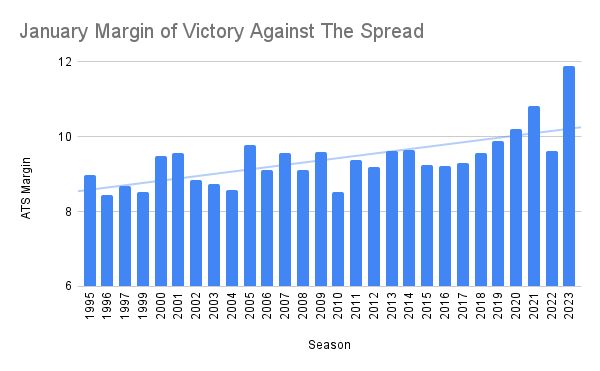 Over the past 20 seasons, the month of January has the second-highest average margin of victory of any month in the calendar behind March, when teams are outright resting, tanking or both.