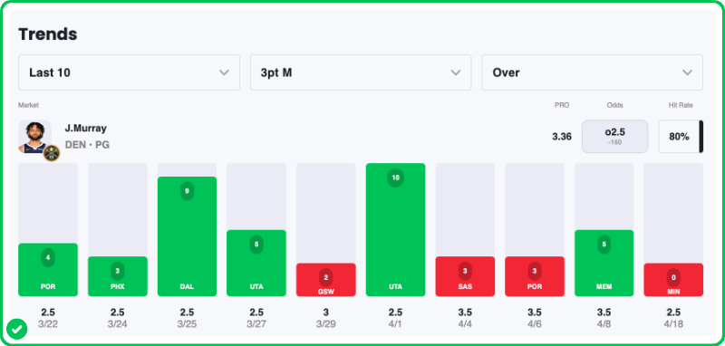 Pick: Most 3-Pointers Made: Jamal Murray (+284)