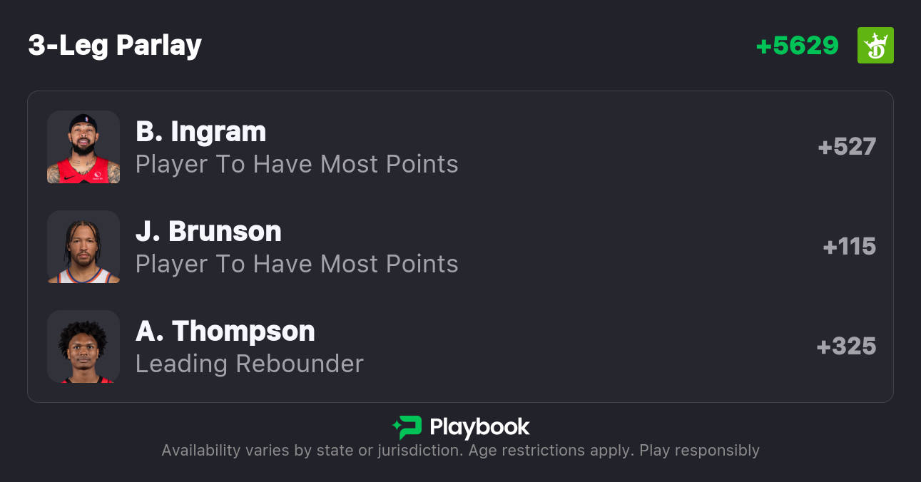 - Raptors vs Cavaliers Top Scorer – Brandon Ingram (+527)