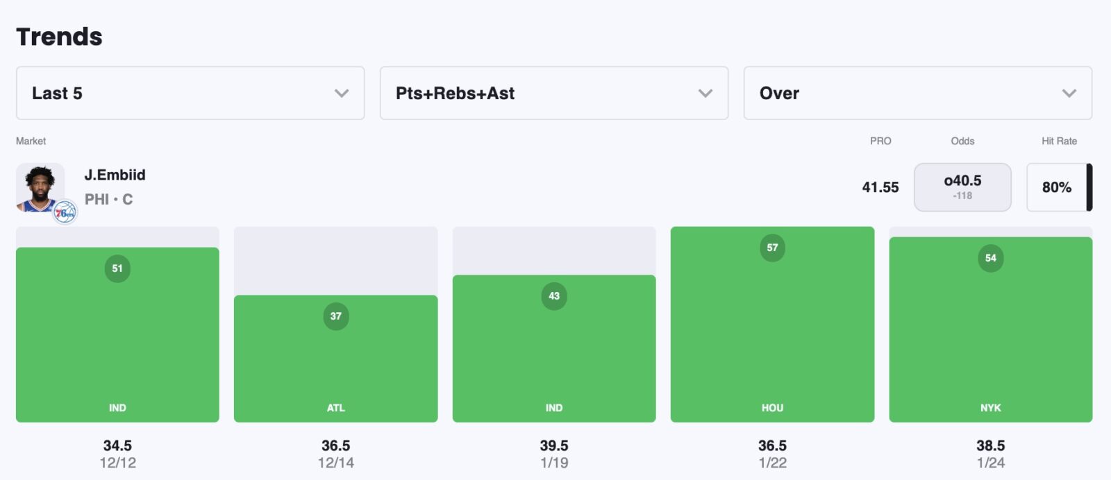 Embiid is so back. He's scored 30+ points in four straight games entering tonight, which included a 32-point, 15-rebound triple-double across 46 minutes against Houston.