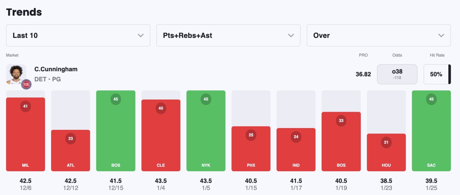 So, I acknowledge the spot isn't exactly ideal, with the Nuggets playing at such a slow pace. Plus, Cade Cunningham still seems to be dealing with a wrist issue — and the recent stats reflect it.