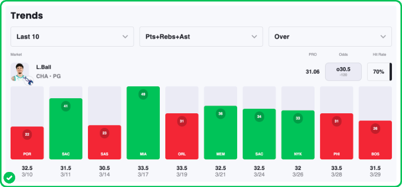 However, among the many players who are capable of going off for the Hornets, LaMelo still tends to have the highest ceiling, even with his minutes restrictions — mainly because of his upside in both the points and assists categories.