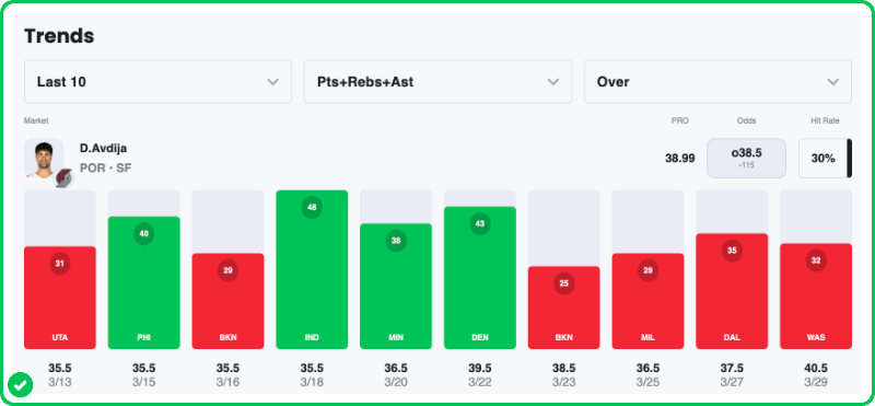 So, I'm going to go off the board here and take one of the less obvious choices. Let's see if we can get a massive payout on Avdija in the late game.