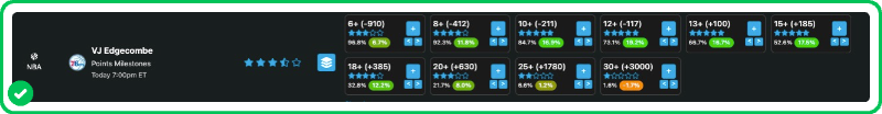 15+ Points: 52.6% Proj. Chance | 17.5% Edge