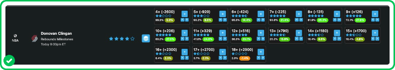 - Donovan Clingan 10+ Rebounds (+206)