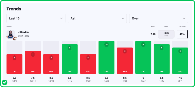 Harden should have success here against a Nuggets team that primarily relies on drop coverage, which is exploitable for his passing skill, especially with the opportunity to lob to Jarrett Allen.