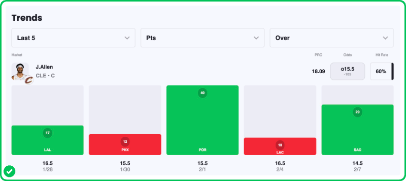 Pick: Jarrett Allen Over 15.5 PointsÂ