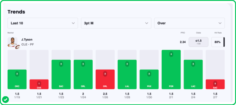 Pick: Jaylon Tyson 2+ Three-Pointers MadeÂ