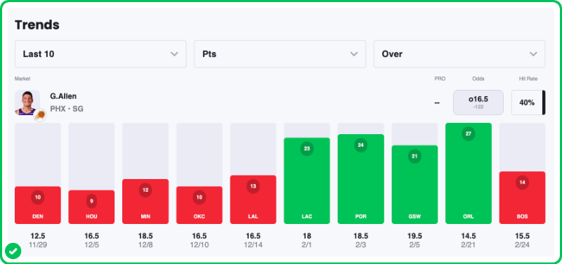 However, prior to last game, Allen scored 21+ points in four straight games for the Suns, while reaching 24+ points in two of those outings.
