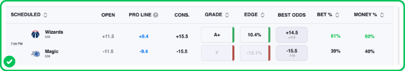 I make the spread for this game Wizards +7.8. I’ll grab the points.