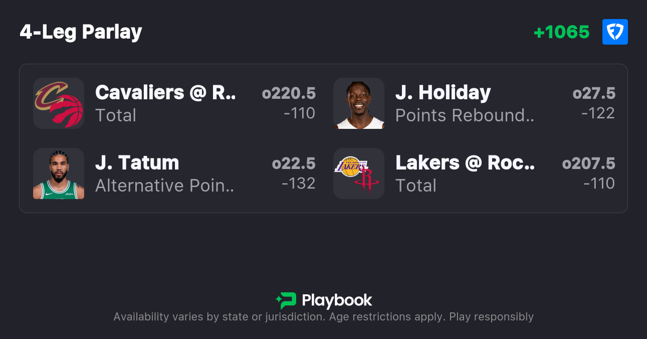 Our staff of betting experts dug into the latest NBA odds and identified best bets for all four of today's matchups — including picks for Cavaliers vs. Raptors, Spurs vs. Trail Blazers, Celtics vs. 76ers, and Lakers vs. Rockets.