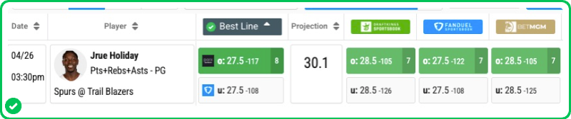 Pick: Jrue Holiday Over 27.5 Points, Rebounds, & Assists (-120)