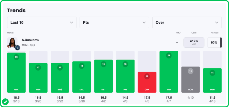 - Ayo Dosunmu Over 12.5 Points (-125)