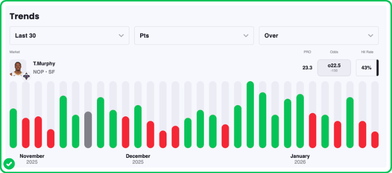 Pick: Trey Murphy Over 22.5 Points (-115)