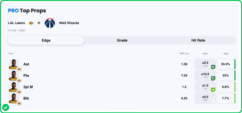 Betting unders on anyone when they are playing Washington is always a scary task, but with Austin Reaves upgraded to questionable, things could get thin for Marcus Smart quite fast from a minutes and usage perspective.