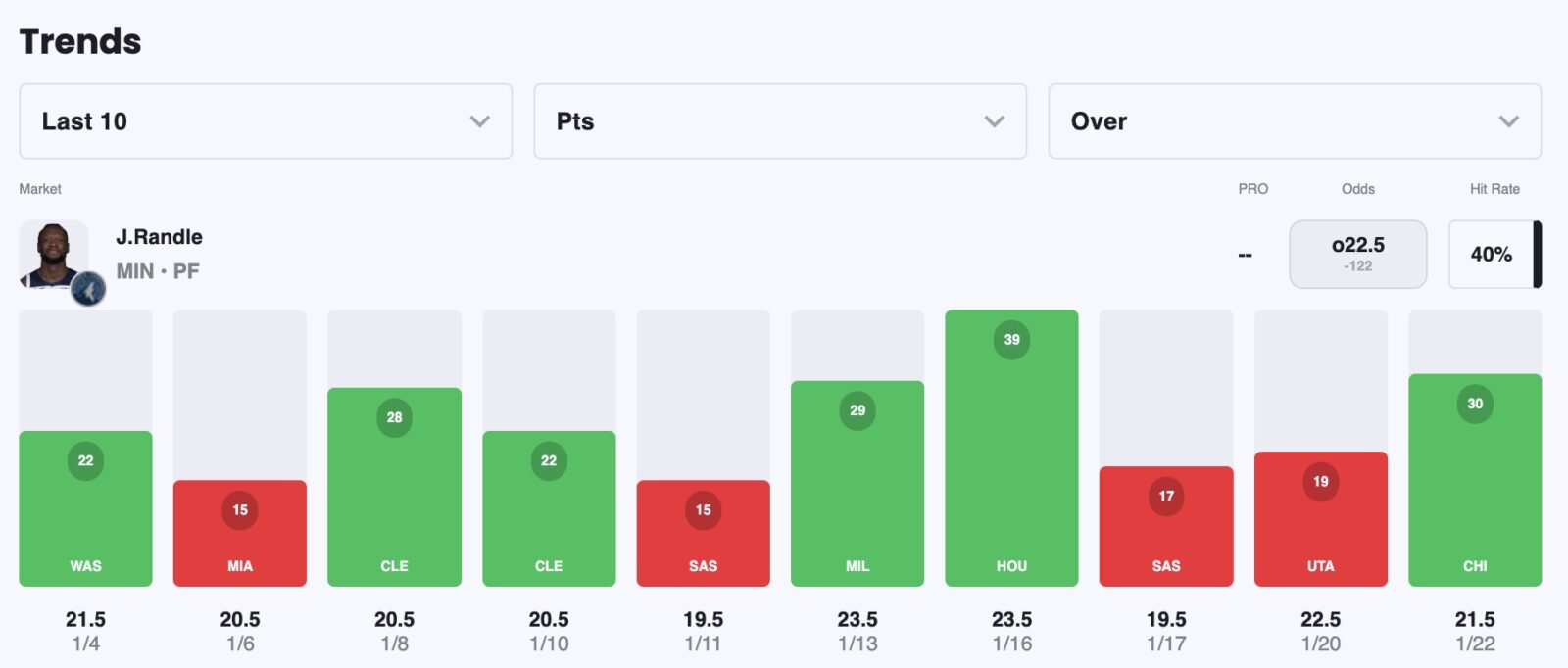 Randle is averaging 22.6 points per game this season and is coming off a 30 point game against the Bulls.