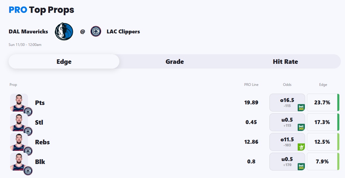 PRO projects Clippers center Ivic Zubac for 19.89 points today, a great 23.7% edge against the market when compared to his 16.5 line.