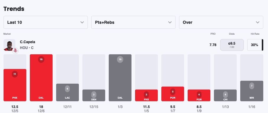 Pick: Clint Capela Under 9.5 Points & Rebounds (+100)