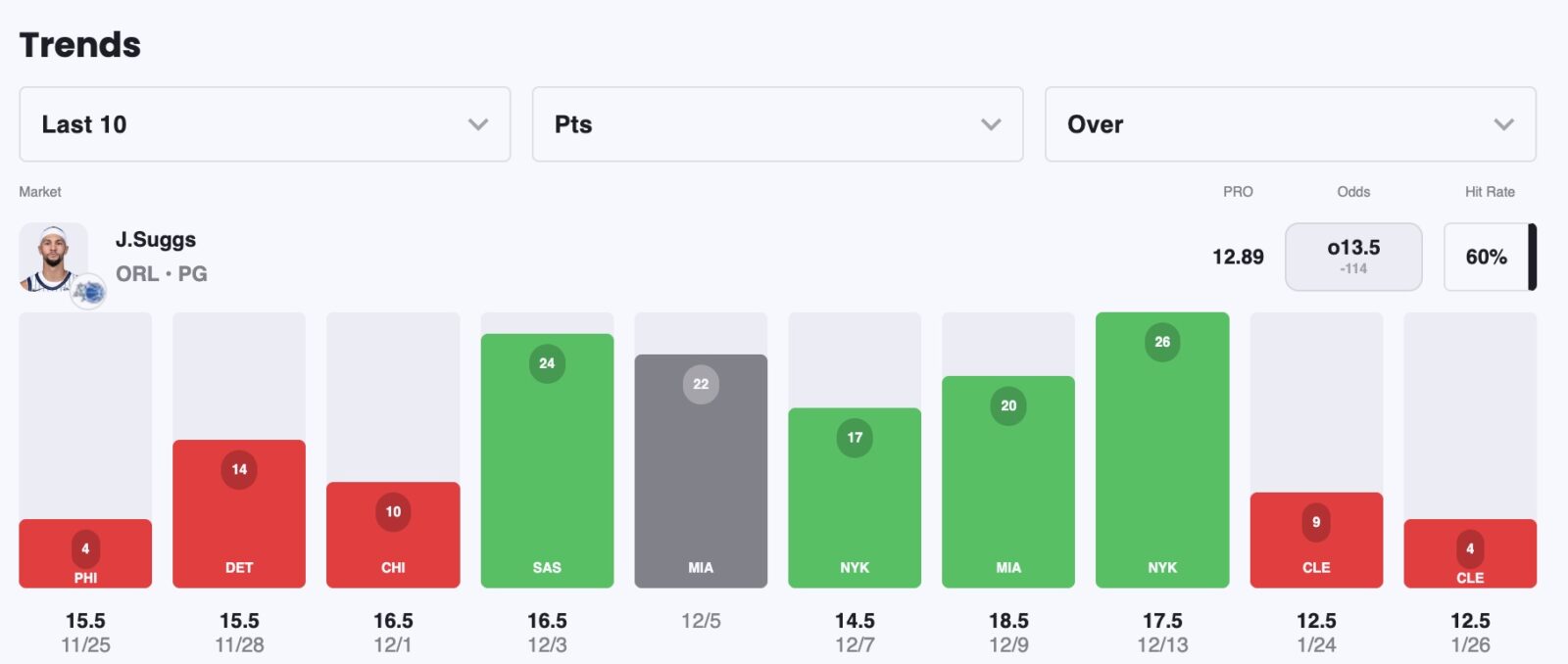 His success has held up despite players being or out, and Miami's defense may key in on others like Paolo Banchero, leaving Suggs room to operate.