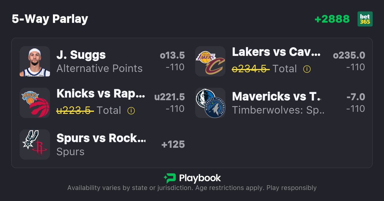 Specific betting recommendations come from the sportsbook offering preferred odds as of writing. Always shop for the best price using our NBA Odds page, which automatically surfaces the best lines for every game. | ||