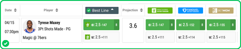 - Tyrese Maxey Over 2.5 Three-Pointers Made (-150)