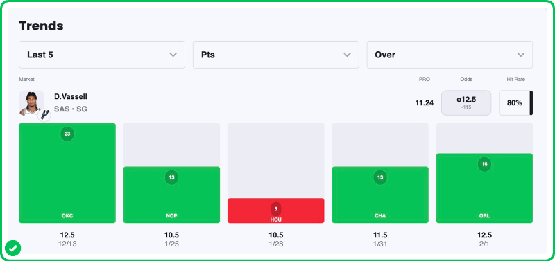 Pick: Devin Vassell Over 12.5 Points (-110)