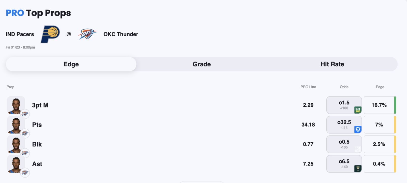 Pacers vs. Thunder