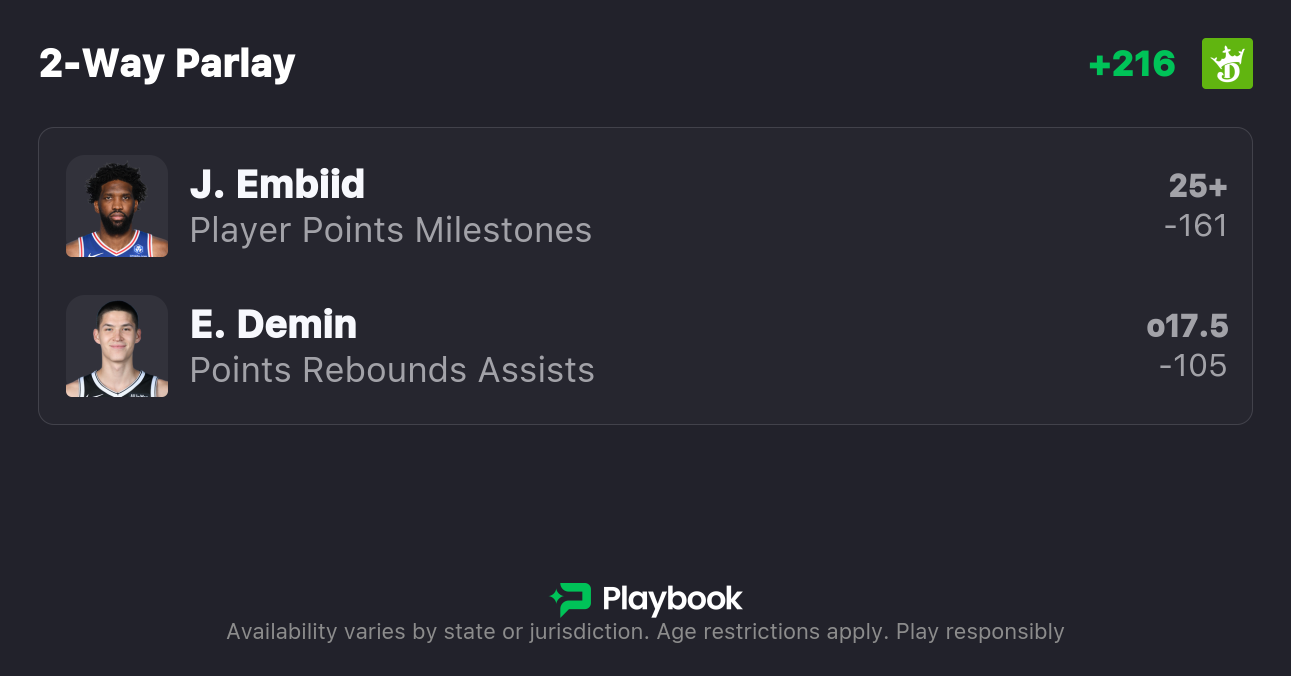 Our NBA player props for Monday are targeting Joel Embiid and Egor Demin.