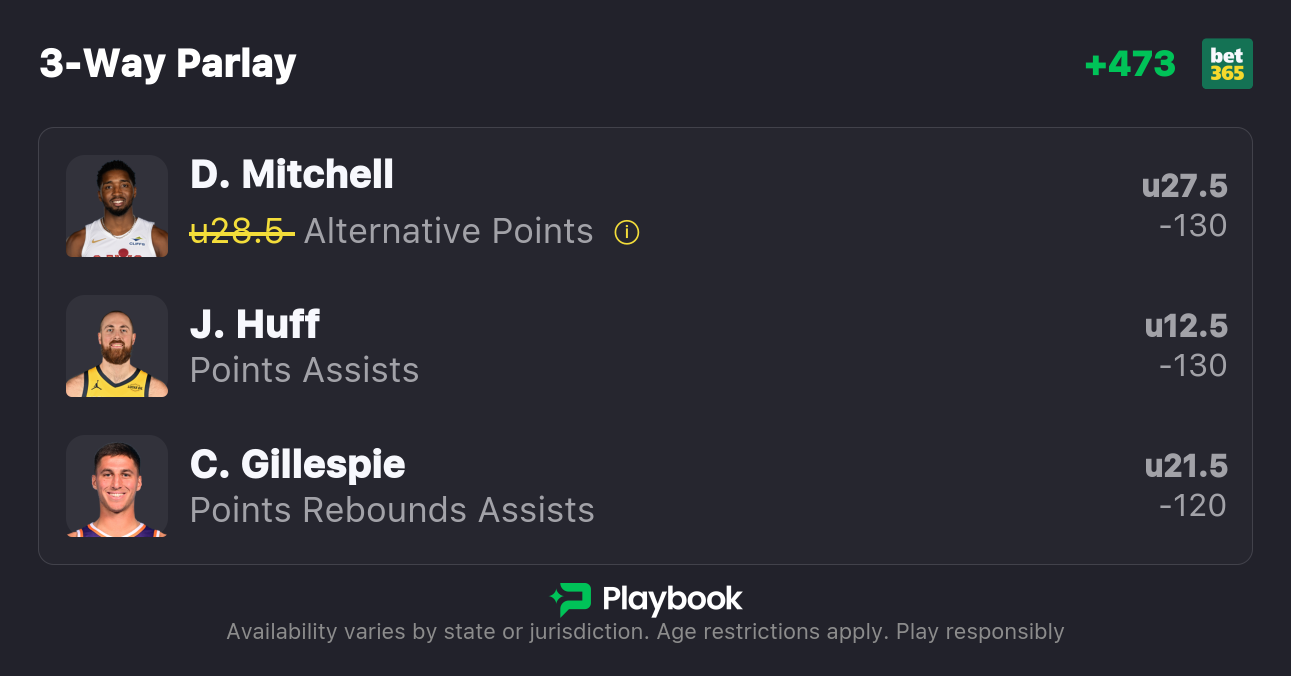 Our NBA player props for Monday are targeting Donovan Mitchell, Jay Huff, and Collin Gillespie.