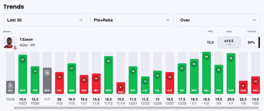 Pick: Tari Eason Over 14.5 Points + Rebounds (-110)