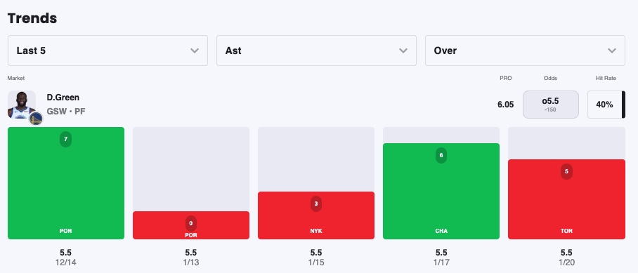 Pick: Draymond Green Under 6.5 Assists (-150)