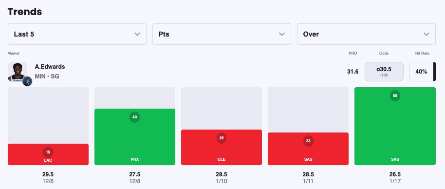 Pick: Anthony Edwards Over 29.5 Points (-125)
