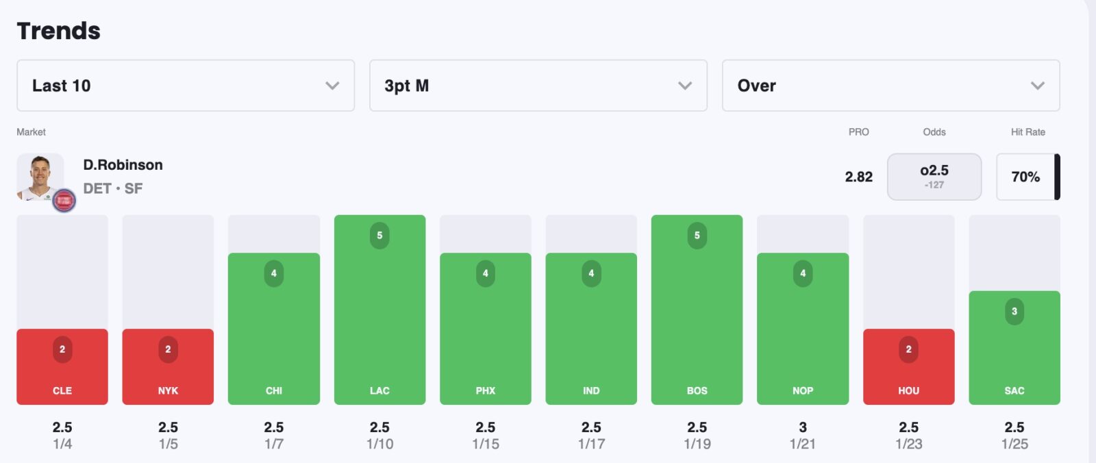Duncan Robinson is a sniper from 3-point range, and this matchup against Denver is strong.