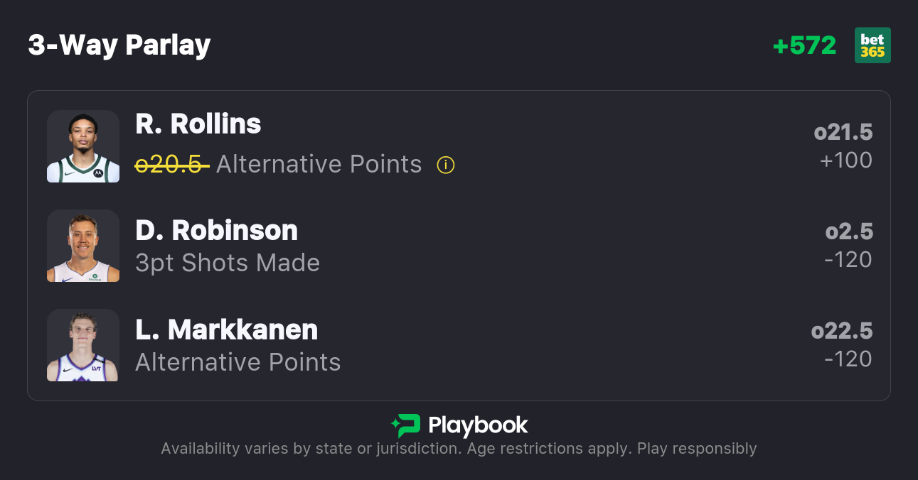 Our NBA player props for Tuesday are targeting Duncan Robinson, Ryan Rollins, and Lauri Markkanen.