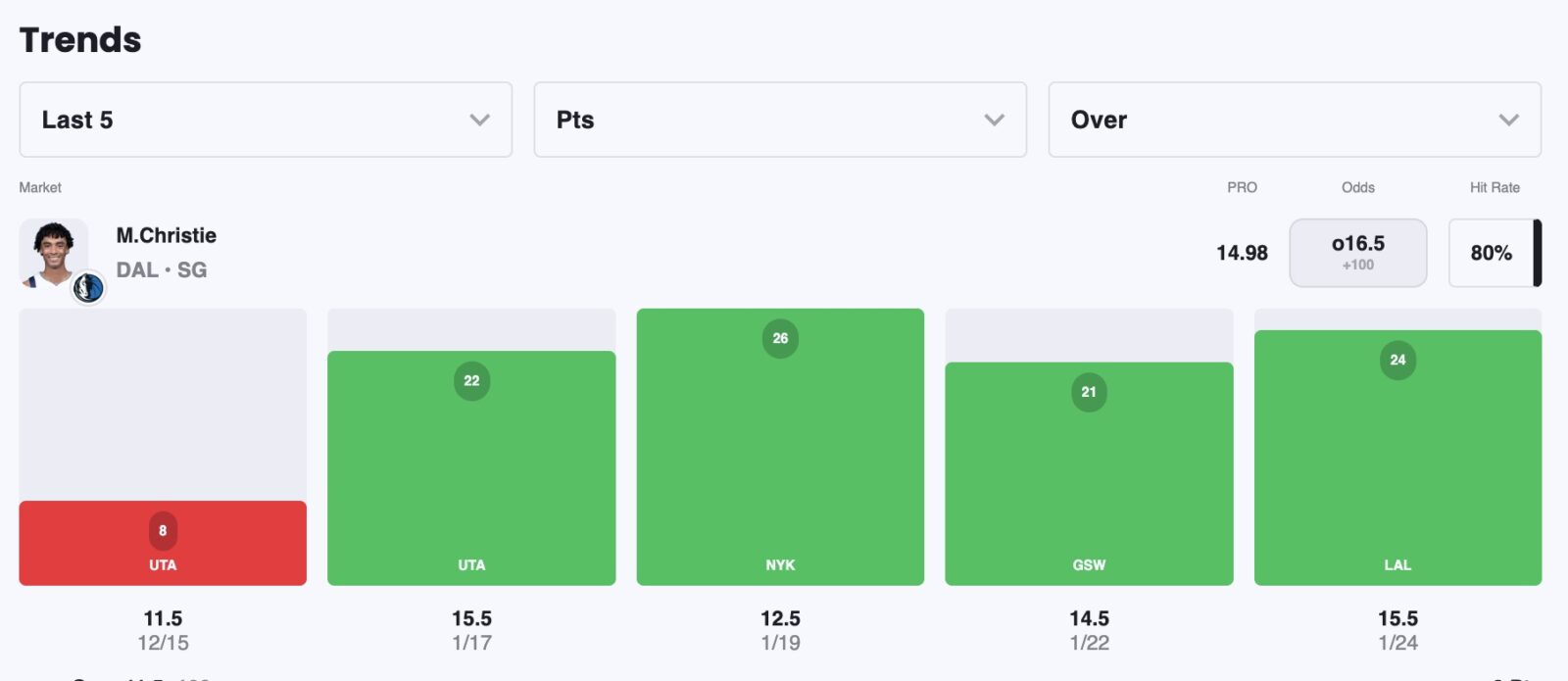 Pick: Max Christie Over 16.5 Points (+100)