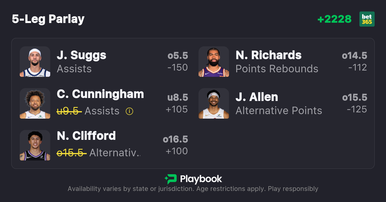 Specific betting recommendations come from the sportsbook offering preferred odds as of writing. Always shop for the best price using our NBA Odds page, which automatically surfaces the best lines for every game. | |