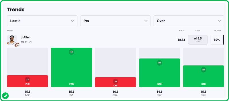Pick: Jarrett Allen Over 15.5 Points (-120)