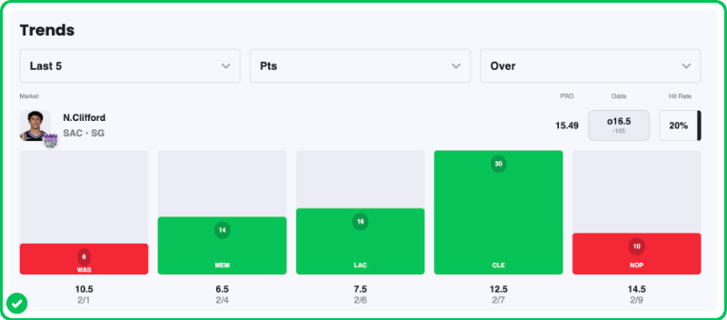 Pick: Nique Clifford Over 15.5 Points (-125)