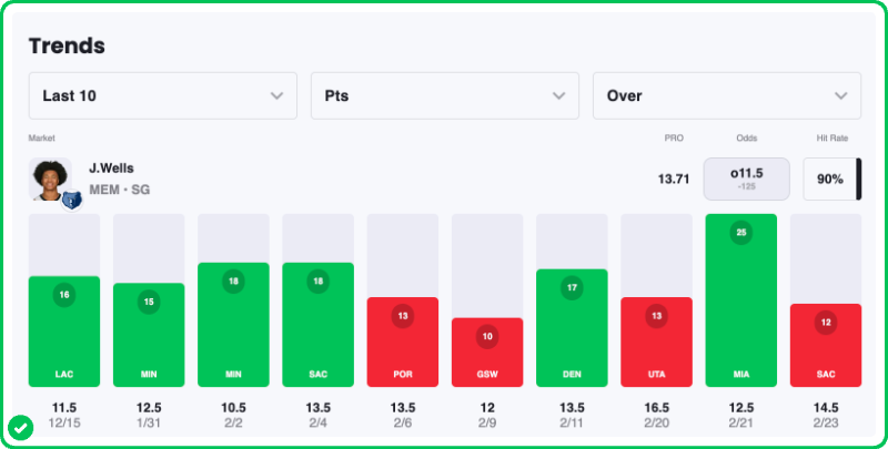 Pick: Jaylen Wells Over 11.5 Points (-120)