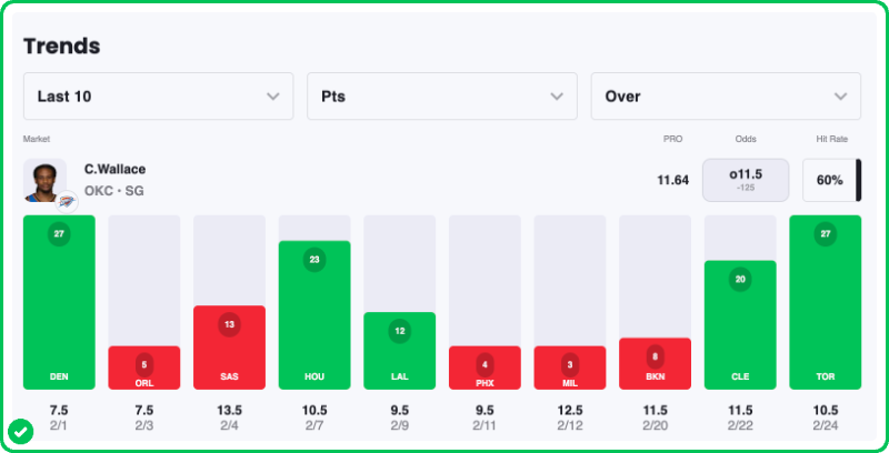 Pick: Cason Wallace Over 11.5 Points (-115)